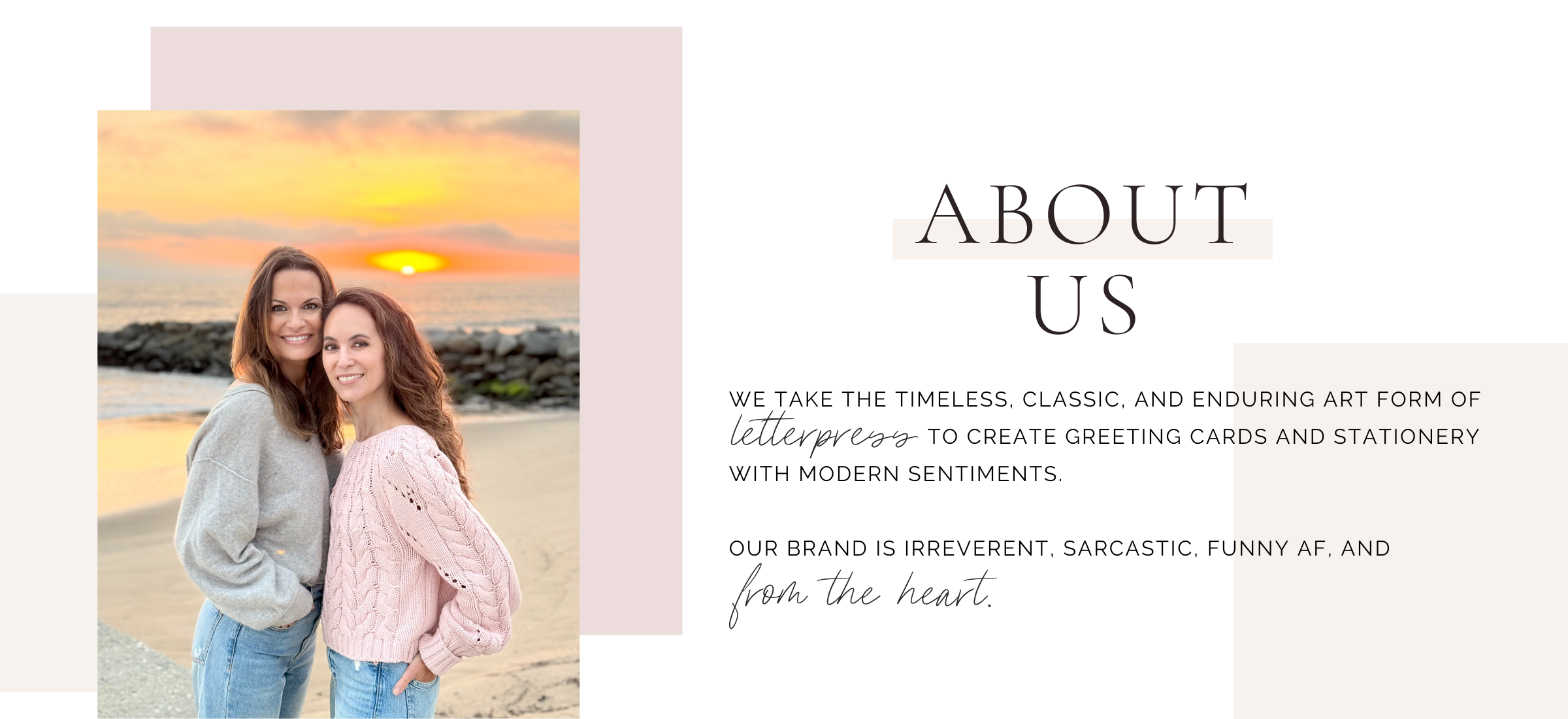 Created by soul sisters Nikki and Ash, Heartprint Press is more than a stationery line; it's a collection of cheeky yet heartfelt reflections and musings on life through letterpress greeting cards, notecards, and vinyl stickers. Infused with humor, sarcasm, and a few well-placed f-bombs, our designs acknowledge the messy, the real, the ridiculous, and the absurd. As moms navigating the chaos of motherhood while both personally confronting autoimmune challenges, we've found solace, laughter, and resilience in creating Heartprint Press, a true testament to the healing power of humor. Inspired by what you actually think, say, and feel in your hearts, come celebrate big moments, little ones, and all the in-betweens with our unique blend of irreverent wit and sincerity--where every design sparks a connection and every laugh leaves a heartprint.
